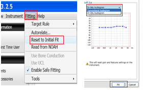 If you did not choose to perform “Auto Fit,” while in the In-Situ Audiometry Screen, at a later point, from the Aventa 3.2.5 Main Menu, select, “Fitting” and “Reset to Initial Fit.” Select, “In-Situ Audiogram,” and “Fit.”