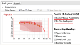 Note: To view In-Situ Audiometric results in the Pre-Fit screen, ensure that there is a check mark in the box next to, “In-Situ Audiogram.”